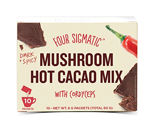 Four Sigma Foods Reishi Mushroom Hot Cacao Drink Mix Packet.Contains 10 single serving packets.400 mg of dual-extracted cordyceps mushrooms per packet.Promotes the hormonal system, adrenal glands and provides balanced, long-term energy.Dark and spicy taste makes for a perfect after-meal or dessert drink and helps you get rid of sweet cravings.Vegan, vegetarian, & paleo friendly - contains tree nuts - coconut