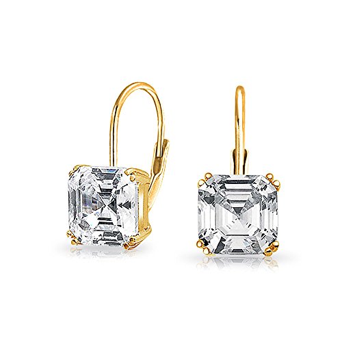 -. Title : Bling Jewelry Sterling Silver Asscher Cut CZ Leverback Dangle Earrings