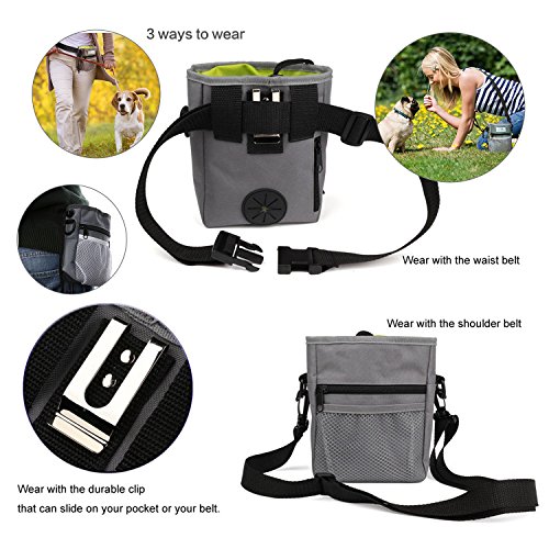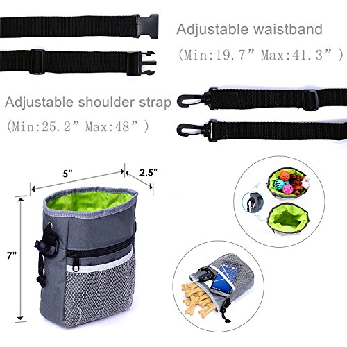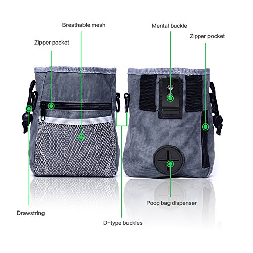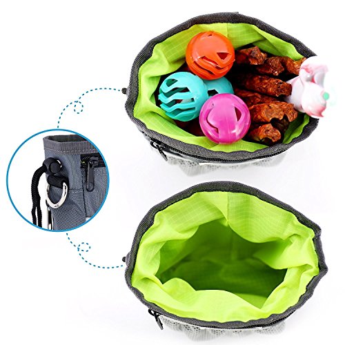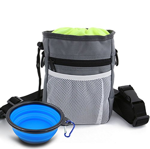 Product Features: ? The dog treat training pouch is specially designed for pet owners and dog trainers that can have everything you need for your pet whether walking or training your dog. ? Our unique intelligently designed pouch features a perfectly sized storage compartment for dog treats, toys, kibble and accessories. Easily pull the drawstring to securely close or open the top of the pouch to keep your items secure. ? Enjoy the 2 zippered pouches and front mesh netting for safely storing your smartphone, money or keys while taking that relaxing evening stroll with your puppy. ? With a collapsible bowl that you can feed the pets anytime, anywhere.