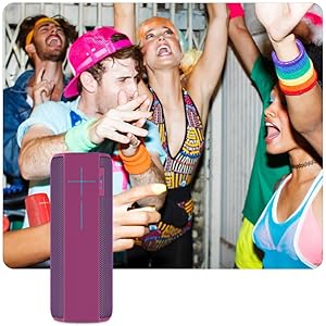 Musical mayhem on the go Go anywhere, start a rager anywhere. UE MEGABOOM has a waterproof (IPX7) grab n’ go shape that is shockingly light – 1.93 pounds. Whether you’re dancing in the rain, barreling down a mountain or just causing mischief with friends, its durability and easy portability make it as spontaneous and crazy as you let it be. |