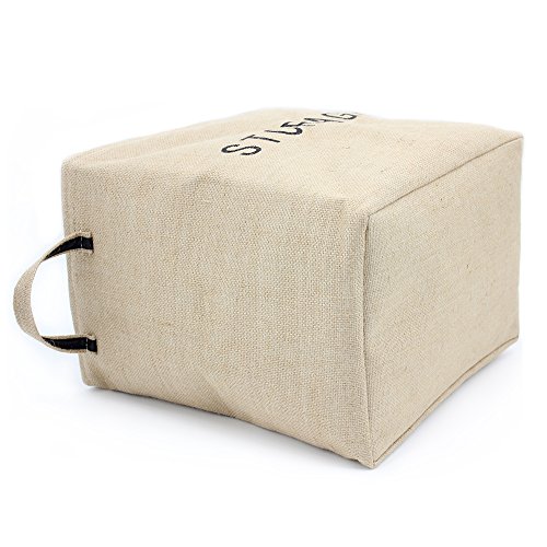 - Constructed of durable and attractive jute, cotton & PVE lining with linen interior lining. Sturdy handle make it easy to carry or pull off and out of shelves.