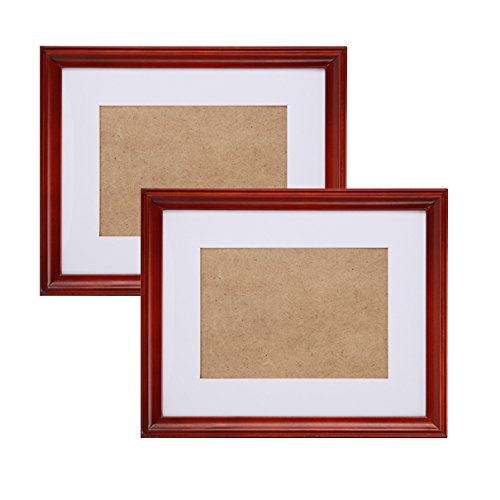 Fastnova 7x9 inch Narrow Cherry Red Wood Picture Frames Made to Display Picture 4x6 with Mat or 6x8 Without Mat, Table Top and Wall Mounting Material Included, Set of Two