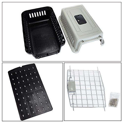 -. Feature : Easy-Carry Design:This lightweight and portable small pet crate is designed for easy carrying. Durable ergonomic carry handle for safer pet transport. / Heavy-Duty Design:WE DROPPED IT FROM TEN METERS HIGH,IT'S STILL INTACT.Steel and plastic construction for enhanced strength, safety and visibility you can easily clean with a damp cloth or hose down as needed. / Secure Construction:A 143-POUND ADULT CAN STAND ON IT, IT IS STILL SAFE.Made of durable plastic with a steel-wire front door. SP.R.Ing-loaded latch for smooth opening. / Door can open easily for easy access and convenience,4 sides ventilation makes pet feel comfortable,Included screws can be used to further secure the top and bottom of kennel for added reinforcement / Product Dimensions: 19" x 12.6" x 12" Pet weight range up to 11 lbs.