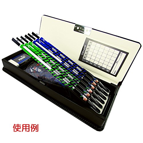 -. Feature : 1ドアタイプ / 安全鉛筆ホルダー(6本)/上下段合わせて鉛筆13本収納可能 / 三角定規収納可能 / 定規が入るポケット / 材質:合成皮革(表紙)/ボール紙(芯材)/ABS(成形皿)/ポリエチレン(鉛筆ホルダー) / 本体サイズ:238mm×90mm×35mm