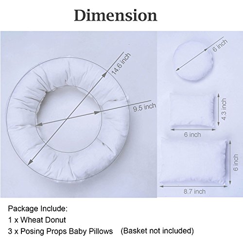 Sunmig 4 PC Newborn Baby Photography Wheat Donut Posing Pillow Basket Filler Baby Photo Prop White