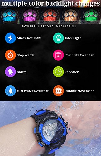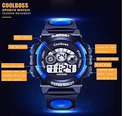 -. Feature : High Quality Imported Japanese quartz movement ,Rubber strap, soft and comfortable to wear / Lighting, 24 hour instructions, weekly display, alarm clock, calendar, chronometer, night light, month display,children watch function 7 color waterproof student electronic watch, / We offer wholesale and retail business. Welcome to consult the P.R.Ice. The larger the number, the greater the discount. / 30m water resistance, protects your watch from splash and rain, convenient for your daily life, not suitable for swimming and sauna, etc. / We have first-class after-sales service, please rest assured purchase, please contact us immediately if there is any quality problem, We will reply you within 24hours ,and provide a satisfactory solution. 12-Month Warranty Service and one Month Return Policy.