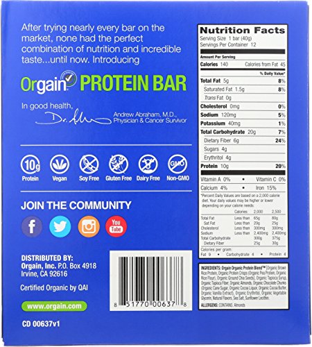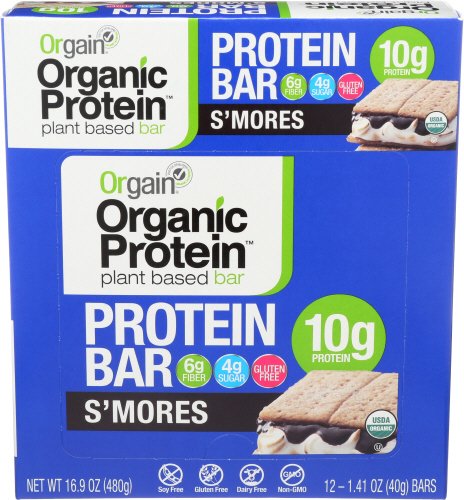 ReleaseDate : 2016-06-27 Studio : Orgain Publisher : Orgain Binding : Grocery Product Description Orgain Organic S'mores Protein Bars are the perfect, on-the-go protein snack with 10 grams of organic, plant based protein, 6 grams of organic fiber, and just 3 to 5 grams of sugar per bar. Vegan, Gluten Free, Soy Free, and Non-GMO. No artificial flavors, colors, or preservatives. 0