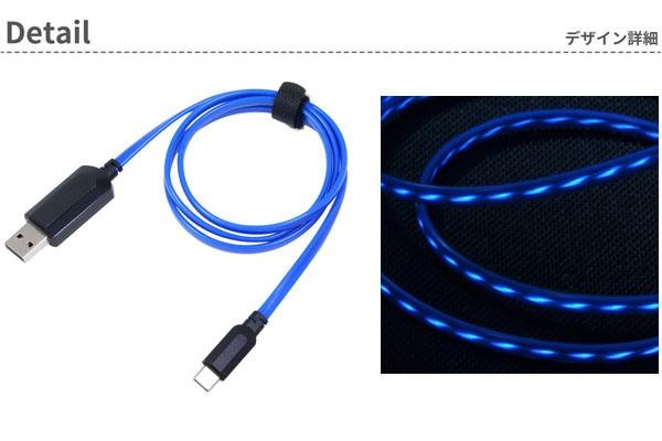 Type-C搭載の機器に使用できる、充電とデータ通信に対応したUSBケーブルです。バッテリー残量によって光の流れる速度が変わり、おおよその充電量を目視で確認する事ができます。充電開始と共に光を放ち、暗闇で使用するとよりイルミネーションを堪能できます。 |