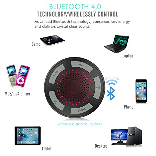 MoKo Bluetooth Lautsprecher - Dusche Wireless Bluetooth 4.0 Lautsprecher Speaker Boombox, Wasserdicht und Stossfest, mit Multiple Farbe LED-Licht, freihandig Gesprach, Akku und star