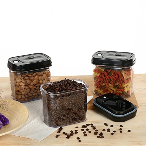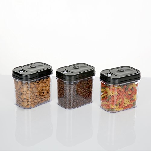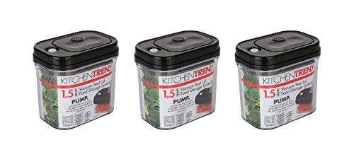 KITCHENTREND Vacuum Lid Food Storage System 3 Piece Set: 3 x 1.50Qt - BPA Free - Black Lids