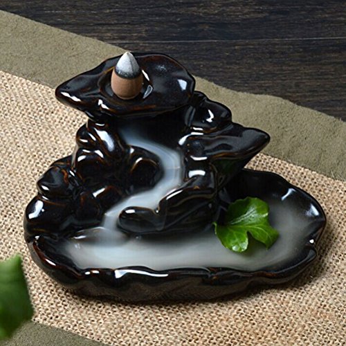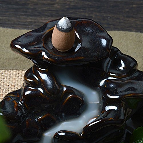 - Color: Black. - Material: Transmutation Glaze. - Size: Approx. 14 * 9.5cm(L * W). - Exquisite workmanship, can be a classical furnishings, with meditation and aid-sleeping effect. - As a refined interest, or for your special hospitality. - Small size, easy to carry. Package Including 1 * Ceramic Glaze Incense Smoke Cone Burner Backflow Censer Tower Holder 0