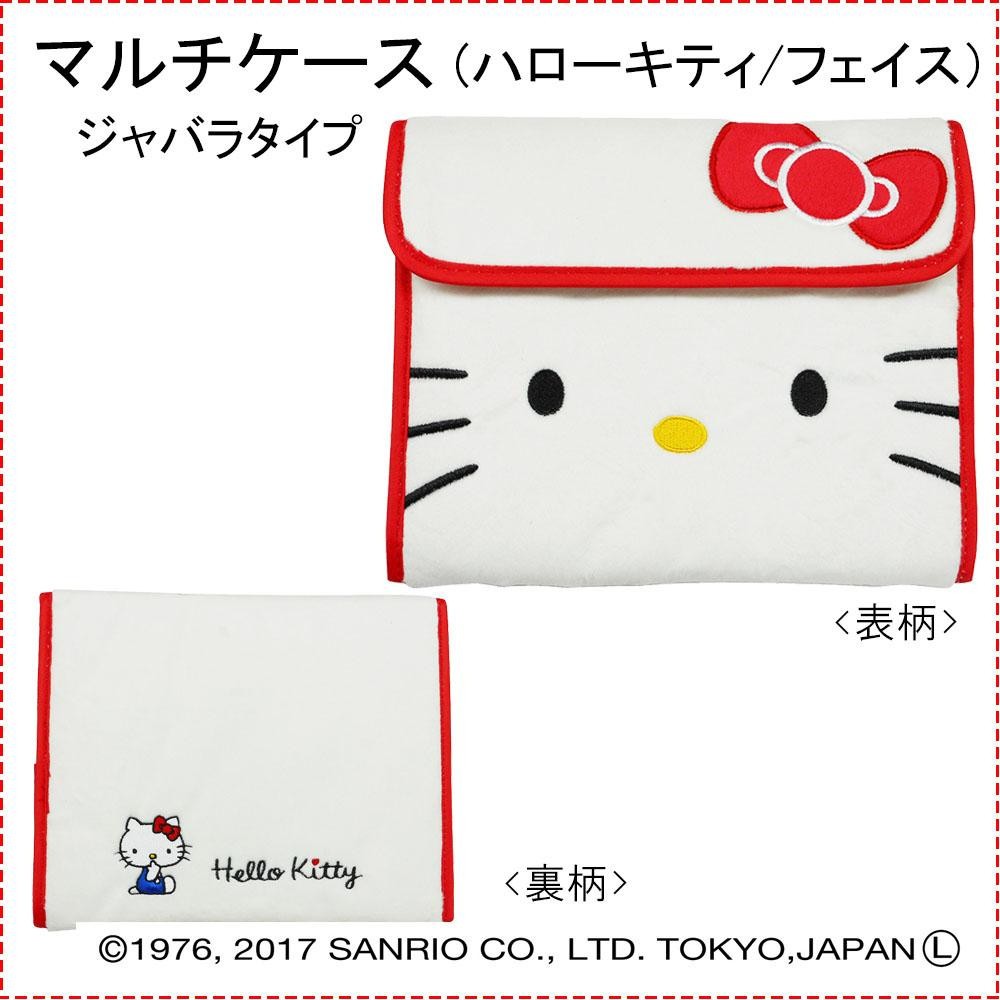 ハローキティのフェイスデザインが可愛いマルチケース。テープ式で開け閉めしやすく、13×18cmサイズの母子手帳やカードをまとめて収納できます。 |