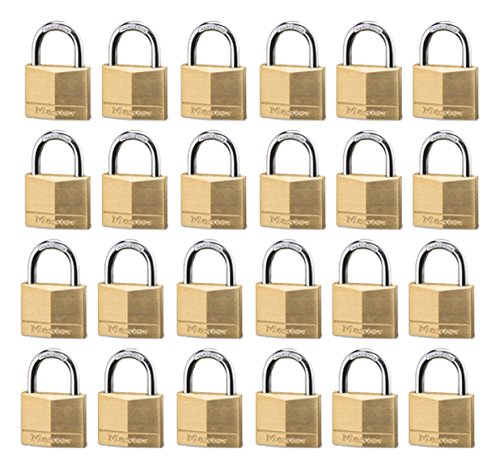 Master Lock 140D Solid Brass Keyed Different Padlock with 1-9/16 Wide Body, 1/4-inch Shackle, 24-Pack