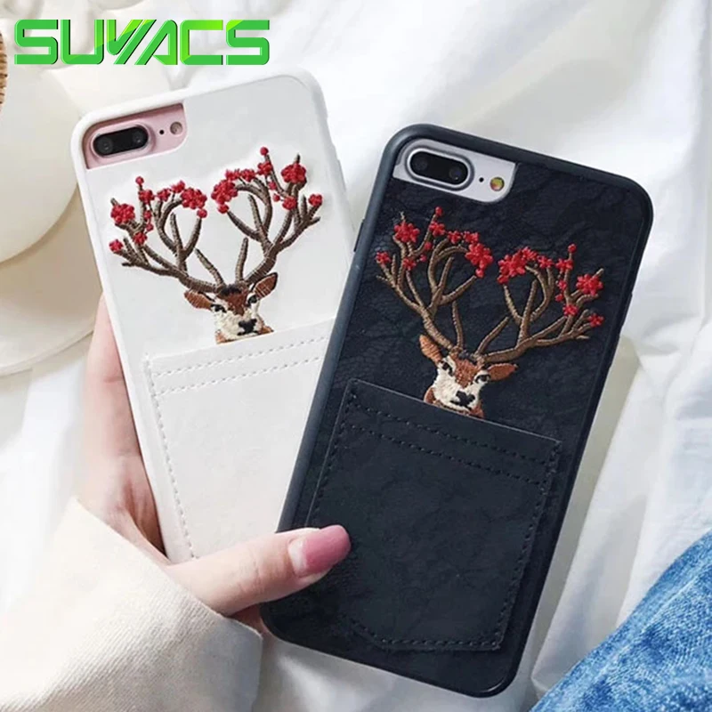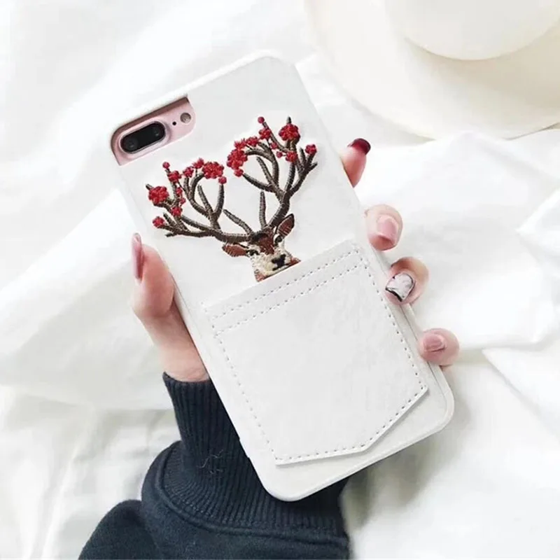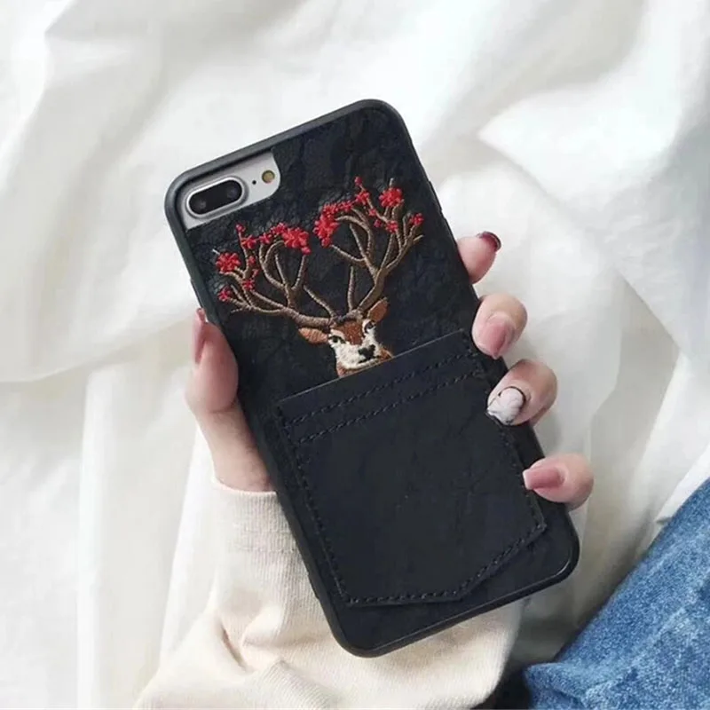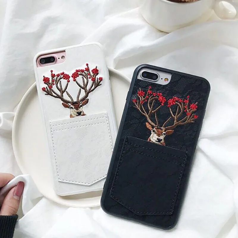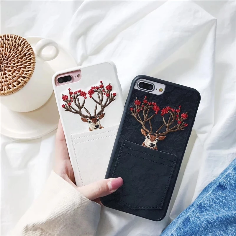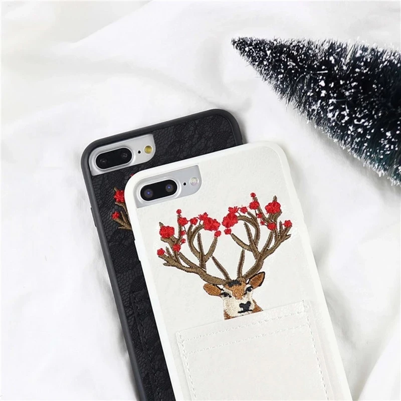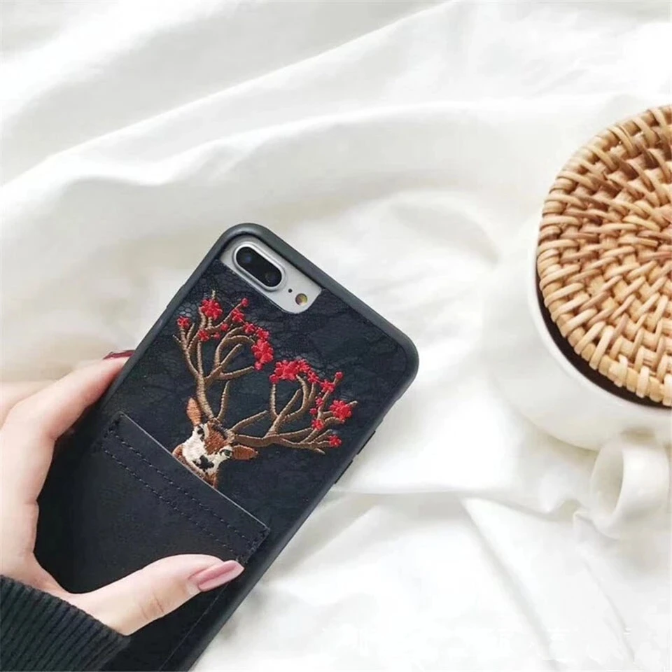 Features:Embroidery Sika Deer Elk Animal Soft TPU Phone Case