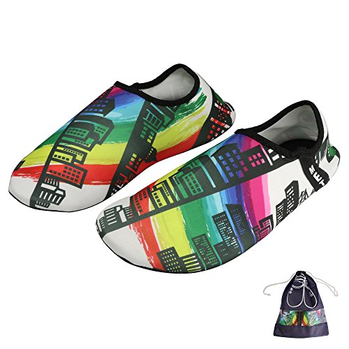 Item Specification Material: Fabric upper Anti-slip rubber sole Measure: 0.39lb Occasion: Beach, swimming, pool, weight training, wake-boarding, sailing, boating, cycling, jogging, walking, fishing, beach volleyball, gardening, lawn, car-washing and driving, surf, scuba, snorkeling, beach walking, yoga, weatherboarding, kayaking, windsurfing, fin socks, shower, bathroom and etc; Package Included: 1*shoes 1*storage bag