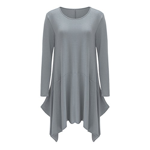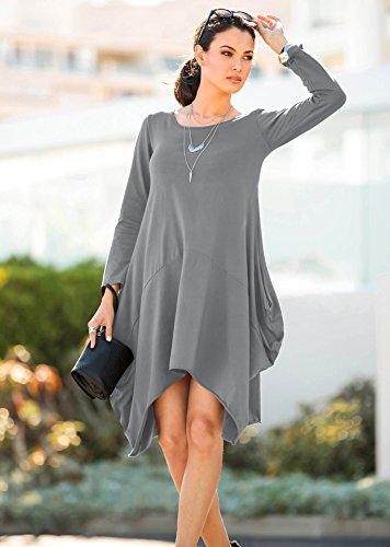 Wearlove Women Asymmetrical Loose Long Sleeve Pockets Tunic Shirt Dress