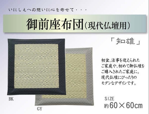 【商品名】純国産 い草 御前(仏前)座布団 『知雄 現代仏壇用』 ブラック 60×60cm