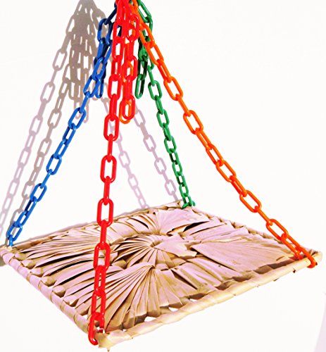 -. Feature : About 7" High x 7" Wide & 7" deep. / Resting platform and swinging toy. / Made with all natural palm leaf mat. / Sturdy plastic chain link. / All bird safe construction.