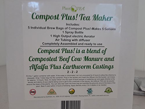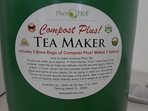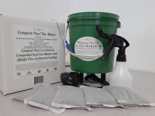PlantTea Compost Plus! Compost Tea Brewing Machine. Includes 5 Brew Bags of Compost Plus! Each Brew Bag makes 1 Gallon of Compost Tea! Certified Organic / Non-GMO / Vegetarian Recommended / Odorless