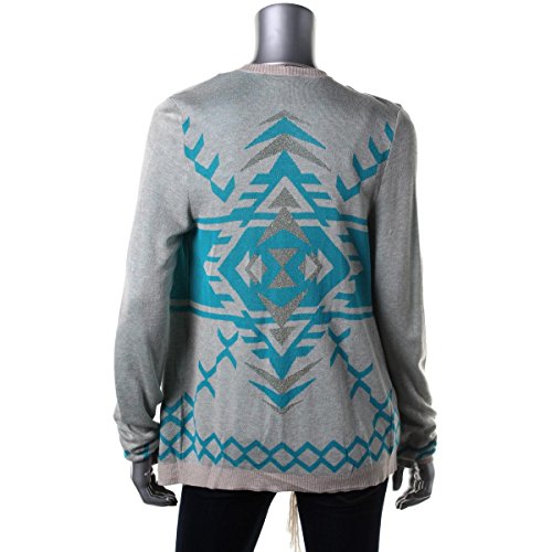 Product DescriptionCardigan features no lining, long sleeves, metallic knit rayon blend fabric, fringed trim, and draped open front-no closure.0