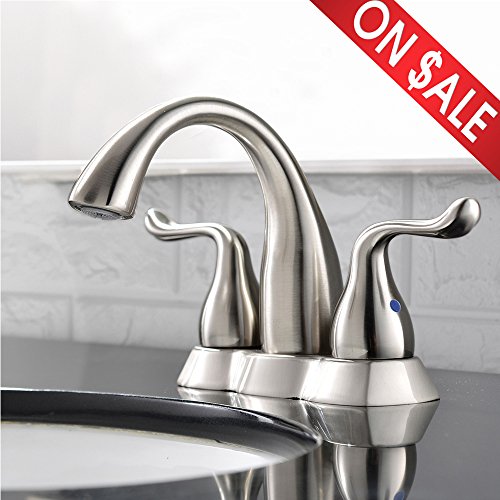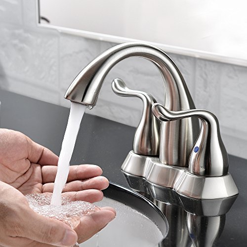 Comllen Modern Stainless Steel Double Handle Waterfall Bathroom Vanity Basin Sink Faucet, Brushed Nickel Bathroom Faucet