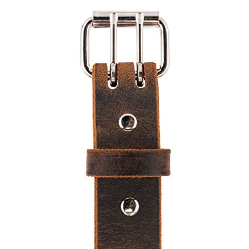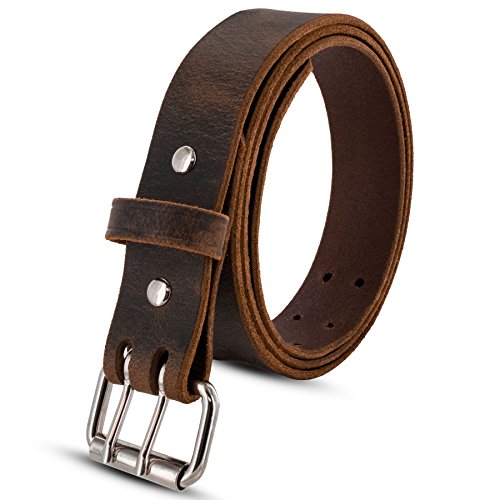The Legend from Hanks Belts is a classic retro look that goes great with jeans or khakis. Made from solid full grain leather this belt will never break or crack at the holes. Choose from our Crazy Horse Brown Leather or Classic Black. This is a great weight for everyday use. The rugged double prong roller buckle adds a great retro look and is super durable. It easily cinches down as snug as you like. We use Chicago screws to hold it all together so you never have to worry about broken snaps. This also allows you to swap buckles if you so desire. Made in the USA from rugged steer hide you'll never want a cheap imported department store belt again.Feature