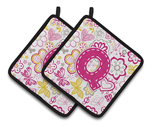 Caroline's Treasures Letter Q Flowers & Butterflies pink Pair of Pot Holders CJ2005-QPTHD, 7.5HX7.5W, Multicolor