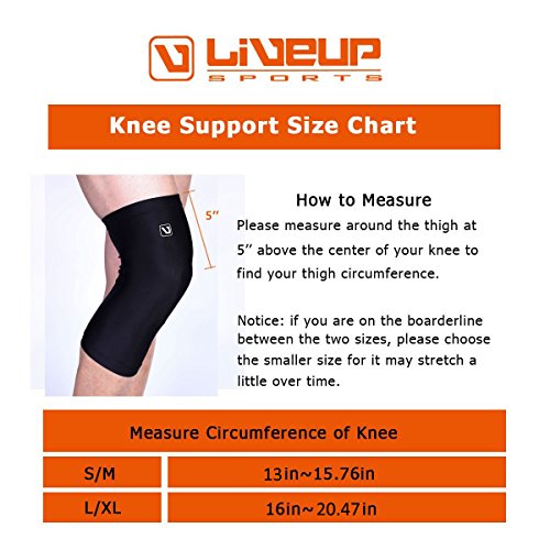 -. Feature : ELIMINATING ODOUR & MOISTURE WICKING: made from 80% nylon, 20%spandex- UPF 50+ material. Easy to wear the light, soft elastic brace keeps the knee joint dry and extremely efficient in eliminating odors and anti-itch, comfortable and durable with long use and make it easier to be worn all day throughout the night. / KNEE STABLIZER FOR USE IN SPORTS: ensuring your sleeve stays always put, no matter what you do. Perfect for a range of activities including basketball, crossfit, dance, hiking, tennis, volleyball, walking, weightlifting, Yoga, and Zumba. / PAIN RELIEF: reduces knee pain, inflammation and swelling caused by regular exercise in addition to common conditions such as arthritis, osteoarthritis, osteoporosis, tendonitis, and general joint pain and discomfort. / UNISEX DESIGN:Best for Both Men & Women and kids - Please check listing images for sizing chart to find the correct size. / 100% MONEY BACK GUARANTEE - your satisfaction is our P.R.Iority; In the unlikely event that Liveup SPORTS doesn't meet all of your needs, we'll refund you the full P.R.Ice *No Questions Asked*.