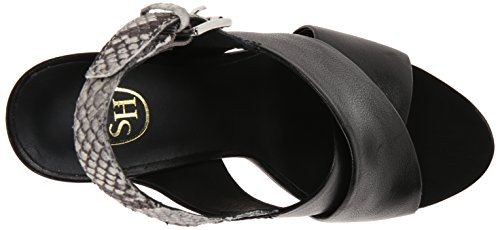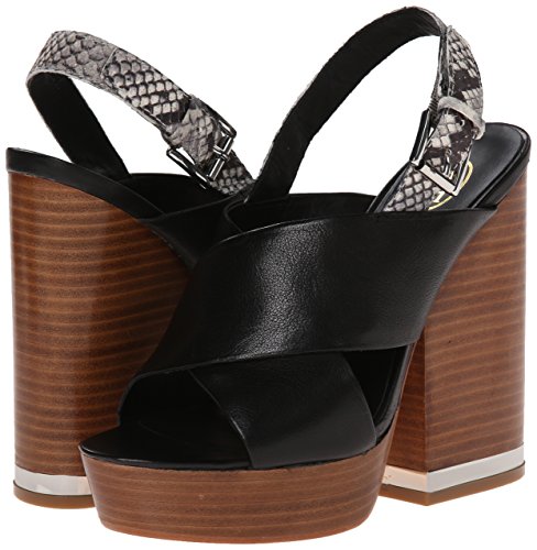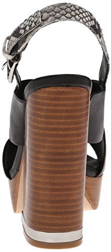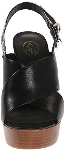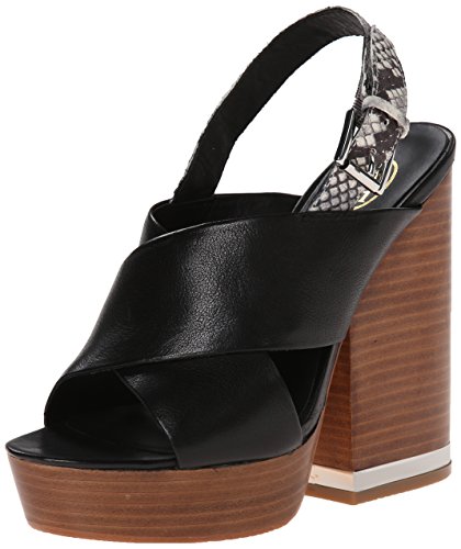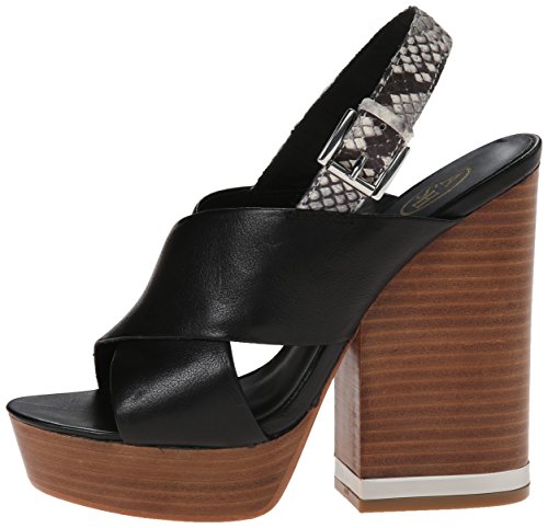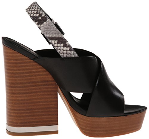 Platform sandal featuring crisscross straps at vamp and contrasting backstrap with buckle closure