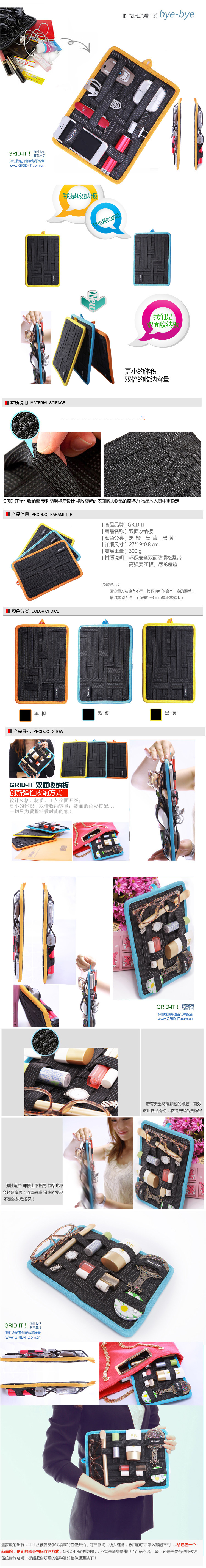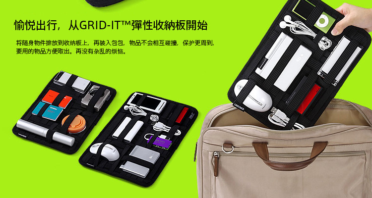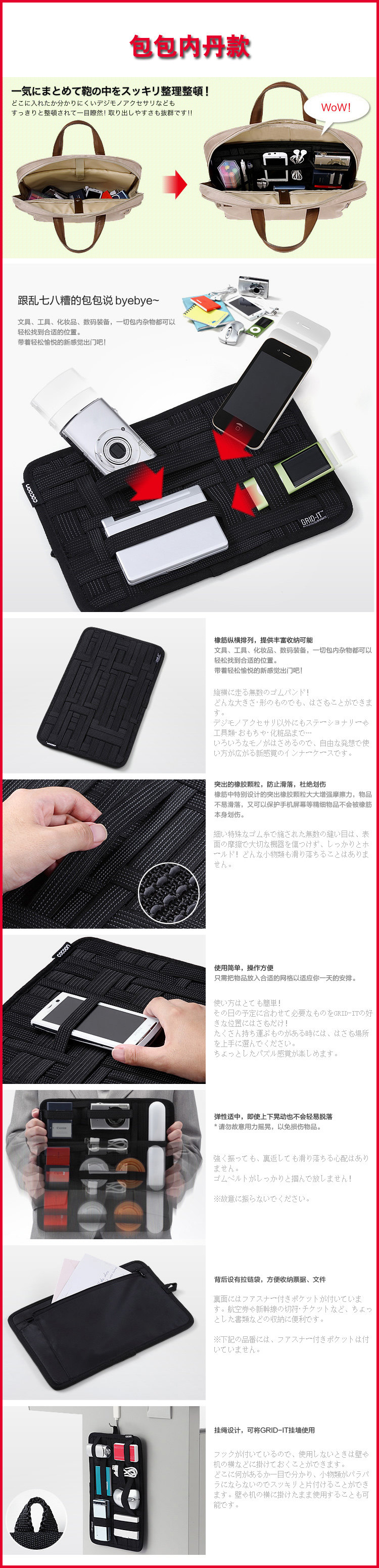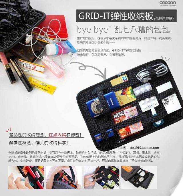 + 弹性橡筋纵横交错,不同大小的物品都能找到合适位置