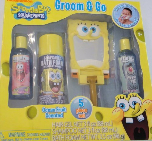 -. Title : Spongebob Squarepants Groom & Go 5 Piece Bath Set - Shampoo, Bath Foam, Hair Gel, Mirror, Play Razor by MZB Accessories