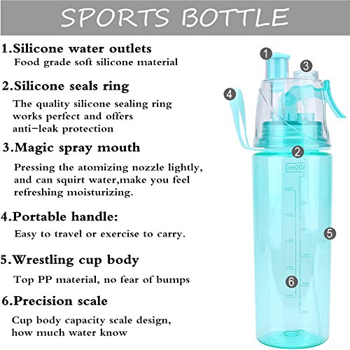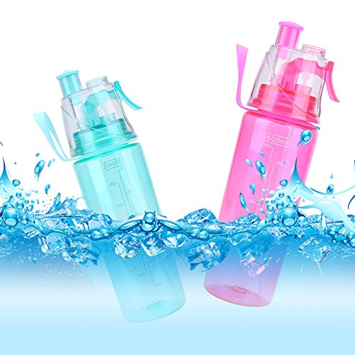 CREATIVE DUAL WATER OUTLETS DESIGN:2 in 1 drinking and spraying bottle,not only for drinking, but also for cooling skin in the summer. It comes with a spray mechanism on the top that allows you to spray a fine mist to the skin surface. Pressing the atomizing nozzle lightly, and can squirt water, make you feel refreshing moisturizing.