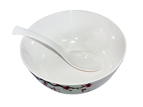 Hi Quality Japanese Ramen Noodle Soup Bowl in Cherry Blossom (Set of 2 with spoons)