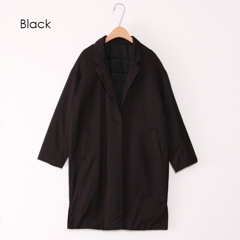 | サイズ | Mサイズ | | 実寸 | 着丈:約95cm 肩幅:約58cm 袖丈:約48cm 裄丈:約80cm 身幅:約55cm ※すべて平置きサイズです。 | | 素材 | 表地:コットン54%・ナイロン46% 裏地:ポリエステル100% 詰物:ポリエステル100% | | 生産国 | 中国 | | 裏地 | あり | | 生地の伸縮 | なし | | 生地の透け感 | なし | | カラー | 01. カーキ 02. ベージュ 03. ブラック | | 注意点 | ▼綿混合商品は洗濯時に多少縮む事がございます。 ▼パソコン、モニター等の環境により、実際の商品素材カラーが多少異なる場合が御座います。予めご了承ください。 ▼お手数ですが必ずお買い物ガイドを一読頂いてからご利用いただきますようお願い申し上げます。 | |