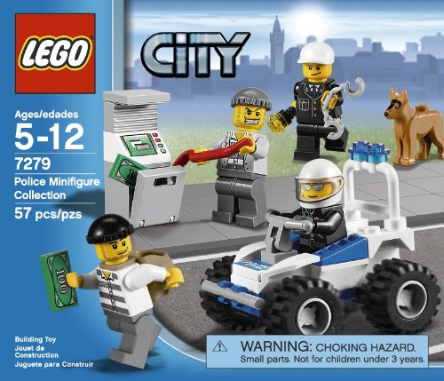-. Feature : Set includes 4 mini-figures: 2 police officers and 2 robbers / Accessories includes ATM machine, hand-cuffs, money sack, money brick and flashlight and quad bike and police dog figure / 57 pieces total