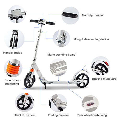 -. Title : Tera Foldable Scooter City Plearsurable Bike 2-Wheel Roller 20cm Wheel-Diameter with Maximum Load 100kg Height Adjustable for Children Adult White Color