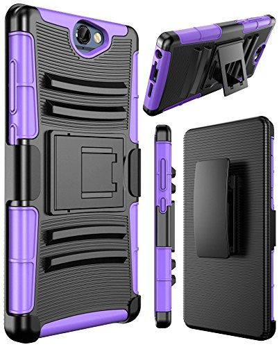 HTC One A9 case, SGM (TM) Hybrid Dual Layer Combo Armor Defender Protective Case With Kickstand + Belt Clip Holster For HTC One A9 (Purple)