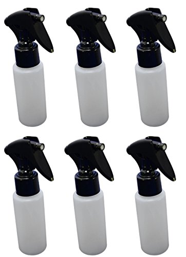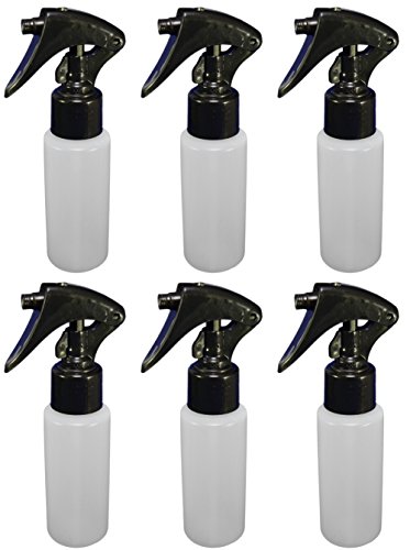 6 - Black Mini Trigger Sprayers with 2 ounce Natural HDPE Bottles