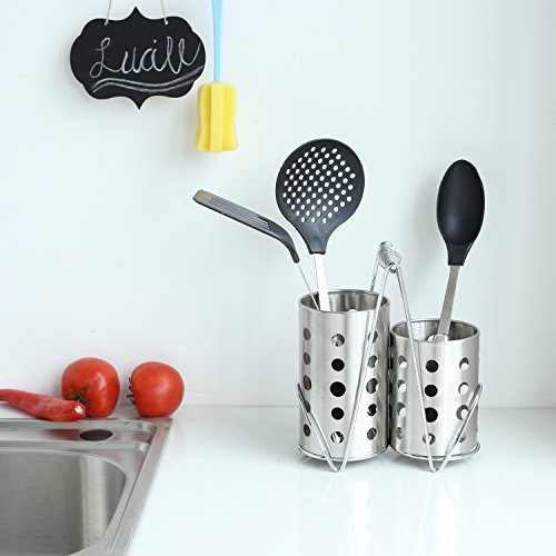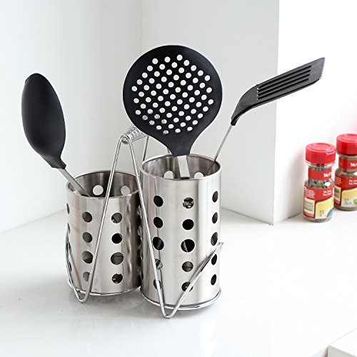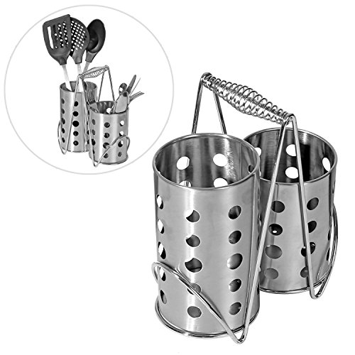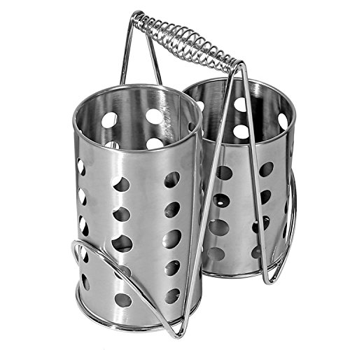 Modern Stainless Steel 2 Compartment Kitchen Utensil Holder, Cutlery Air Drying Organizer Rack