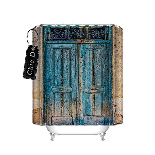 Rustic Country Barn Wood Door Waterproof Fabric Shower Curtain for Small Bathroom Size 36" x 72" with Rings-Antique Theme