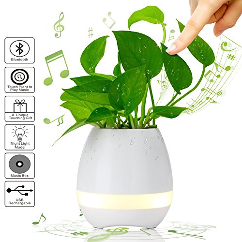 -. Feature : ***A MAGIC PLANT PIANO***This is a magic Plant Piano. Can you imagine playing piano on a real plant? Growing your favorite plant in this magic flowerpot. The plant will play a song by every touch on it, just like you are playing a piano. Meanwhile, a warm ring light will twinkle along with the rhythm. / ***4 IN 1 FUNCTIONS*** Plant Pot, Touch Plant Playing Music Piano, Bluetooth Speaker, Night Light. All function fulfilled by simple touch on the plant, you won't find such unique brilliant gift from other place in the world. Best Gifts !!! / ***BEST GIFT***Perfect Live and Warm Birthday Gift, Grow a plant under your meticulous care by your hand or transplant flowers on this flowerpot, send it to the one you love as a gift. / ***MULTI-PURPOSE*** Perfect for dorm, bedroom, living area, cafe, restaurant, ward, lounge, families at special events, children for relaxing. Also be a birthday gift, housewarming gift, or simply as personal treatment. / ***100% SATISFACTION GUARANTEE*** 100% MONEY BACK GUARANTEE, no questions asked.