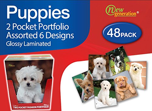 -. Title : New Generation - Puppies - 2 Pocket Folder Heavy Duty 3 Hole Punch - 48 Folders per Pack in Display Box Assorted 6 Fashion Designs UV Glossy Laminated