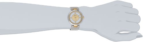 - Feature : Round watch featuring transparent dial with gold-tone hands, markers, and logoed centerpiece / Stainless steel 32 mm case and mineral dial window / Japanese quartz movement with analog display / Stainless steel mesh band and fold-over clasp with double push-button safety closure / Water resistant to 50 m (165 ft)