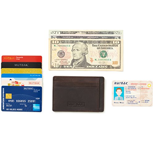 -. Binding : Apparel -. Brand : Mutbak -. Department : mens -. Feature : HIGH QUALITY - LONG LASTING LEATHER - The best Full Grain, Vegetable Tanned Leather that is guaranteed to last. Combined with high quality stitching and you have a wallet made to stay with you for a long time! -. ProductGroup : Apparel -. ProductTypeName : ACCESSORY -. Size : Card Holder -. Title : MUTBAK Sentry - Slim Leather Cardholder Wallet with RFID Blocking Minimalist Design