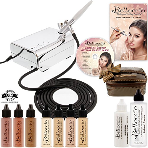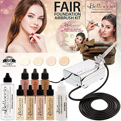 -. Binding : Misc. -. Brand : Belloccio -. EAN : 0848849028751 -. Feature : Belloccio's exclusive airbrush foundation will change your makeup application forever! / Within minutes you can achieve an even, flawless, soft natural look that's perfectly blended to match your skin tone / Easy to apply, light as air daily wear makeup that lasts all day without touch-ups / Instantly conceals imperfections / Instantly conceals imperfections Mastering airbrush techniques is simple and quick. Takes only minutes to learn how to apply the makeup correctly -. Label : Belloccio -. Manufacturer : Belloccio -. Model : KIT-DLX-FAIR4 -. MPN : KIT-DLX-FAIR4 -. PartNumber : KIT-DLX-FAIR4 -. ProductGroup : Beauty -. ProductTypeName : BEAUTY -. Publisher : Belloccio -. Studio : Belloccio -. Title : Belloccio Professional BEAUTY DELUXE Airbrush Cosmetic Makeup System with 4 FAIR Shades of Foundation plus Blush, Shimmer and Bronzer All in 1/2 oz bottles -. UPC : 848849028751