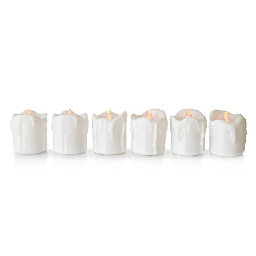 • REALSTIC drips, flickery yellow flame, fragrance-free flamefree votive candles