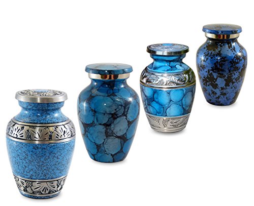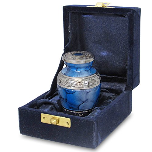 - Each of these blue high quality keepsake urns are brass but with each have their own unique style and finish