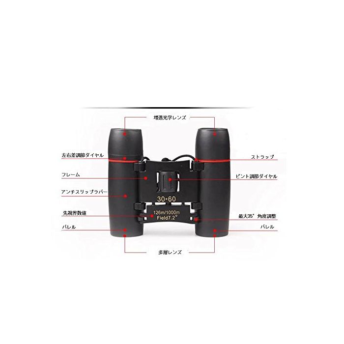 원본상품명:高倍率 小型 折りたたみ 眼鏡 望遠鏡 30倍 ズム 30×60 赤 レンズの2セレクション
