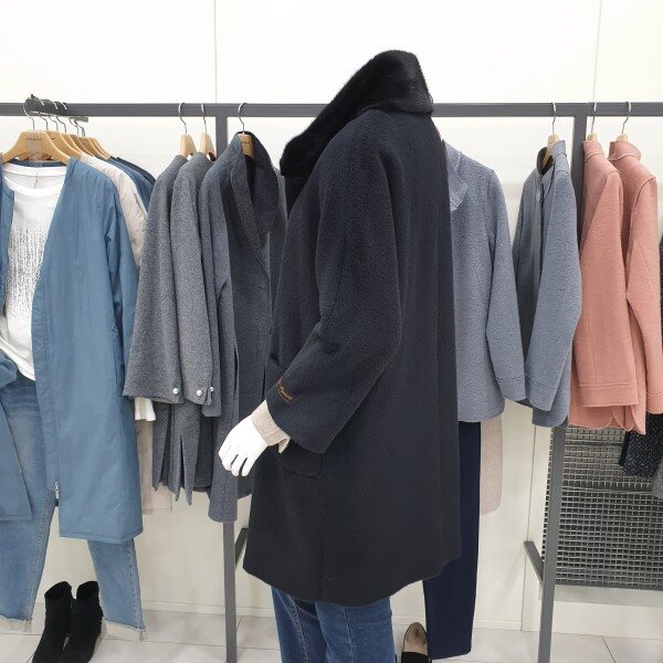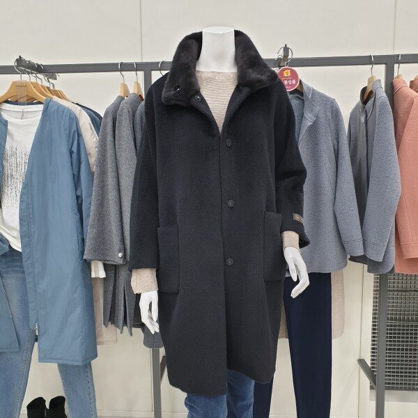 목부분 밍크 배색된 알파카 코트입니다.팔길이 기장감 길지 않으며 부드러운 어깨선으로 편하게 착용가능합니다