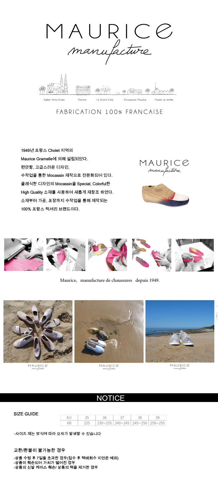 -소재 : SPIGA ECRU NOIR(나파가죽/고무창),TRESS/CUI/CUI BLANC(나파가죽/고무창),MER/ENCRE/BLANC(나파가죽/고무창),RAZZA BLANC ARGENT(나파가죽/고무창)